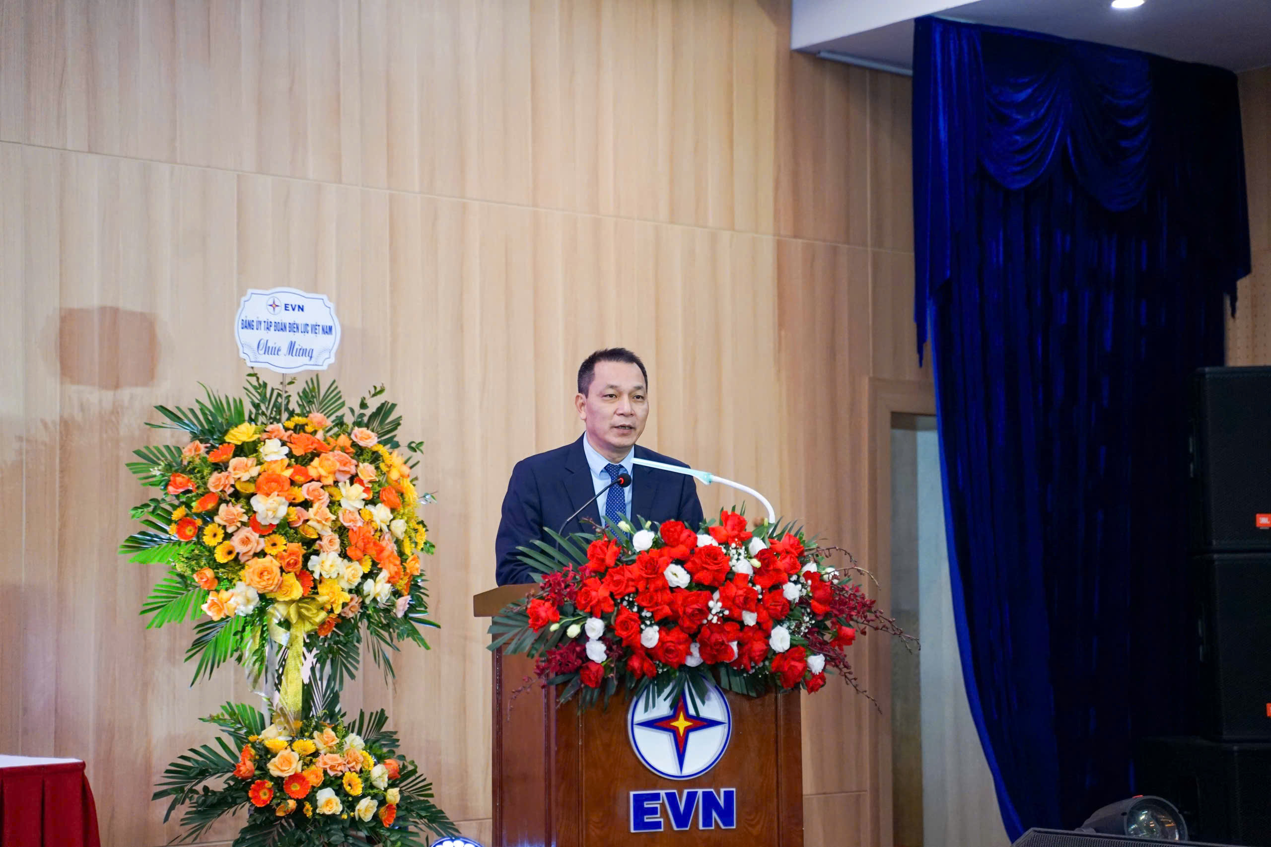 Comrade Dang Hoang An - Member of Government Party Committee, Party Secretary, Chairman of EVN Board of Directors making speech