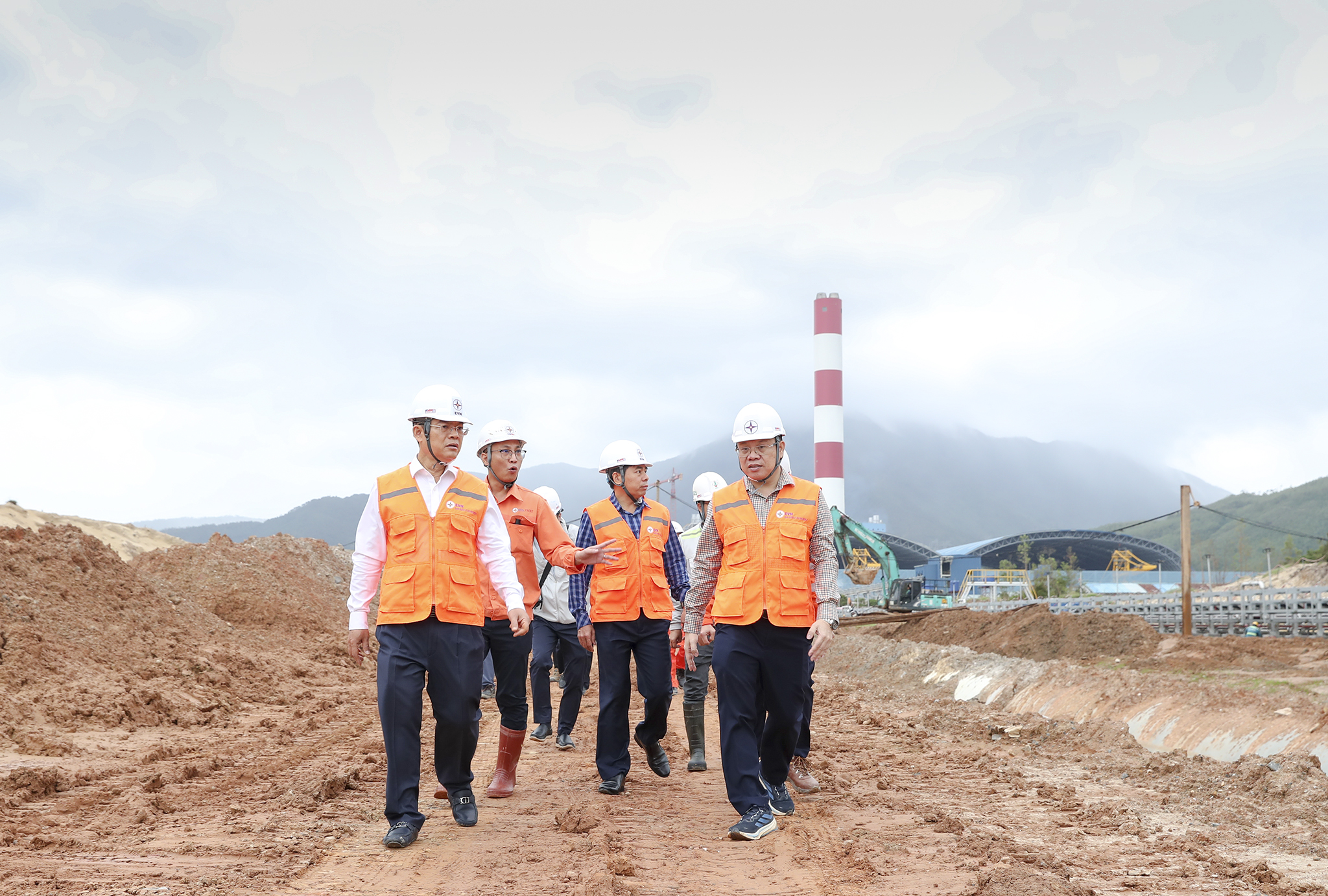 Mr. Nguyen Tai Anh – EVN’s Vice President (front row, left) inspecting construction site of Quang Trach 1 Thermal Power Plant project. Plant includes 2 coal-fired units, capacity 2x701.5MW