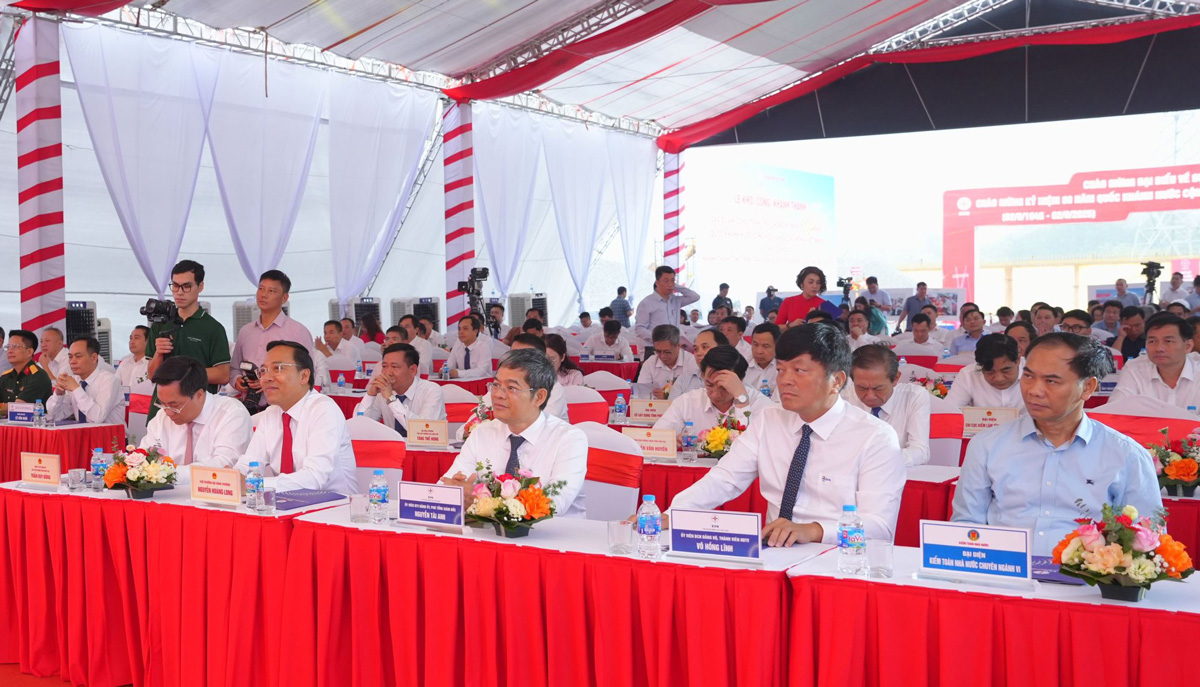 Attending the inauguration ceremony of the Vinh Yen 500kV Substation and its connecting transmission line, on behalf of the Ministry of Industry and Trade, was Deputy Minister Nguyen Hoang Long. Representing the Phu Tho Provincial People’s Committee were Mr. Tran Duy Dong, Chairman, and Ms. Phung Thi Kim Nga, Vice Chairwoman. The event also welcomed representatives from various ministries' departments and bureaus, as well as leaders of Phu Tho’s provincial departments and sectors.