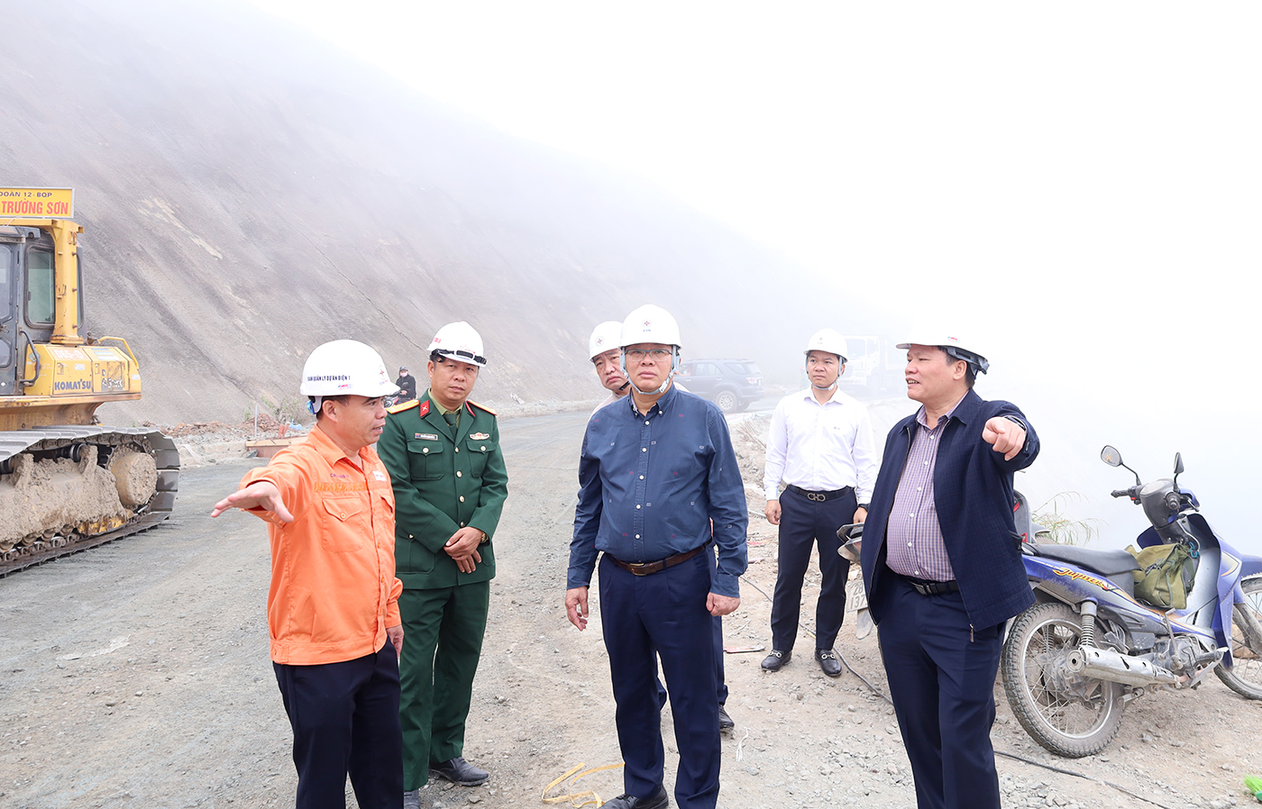 EVN leaders inspect water intake area, where construction of R2 operation road is being urgently finalized.