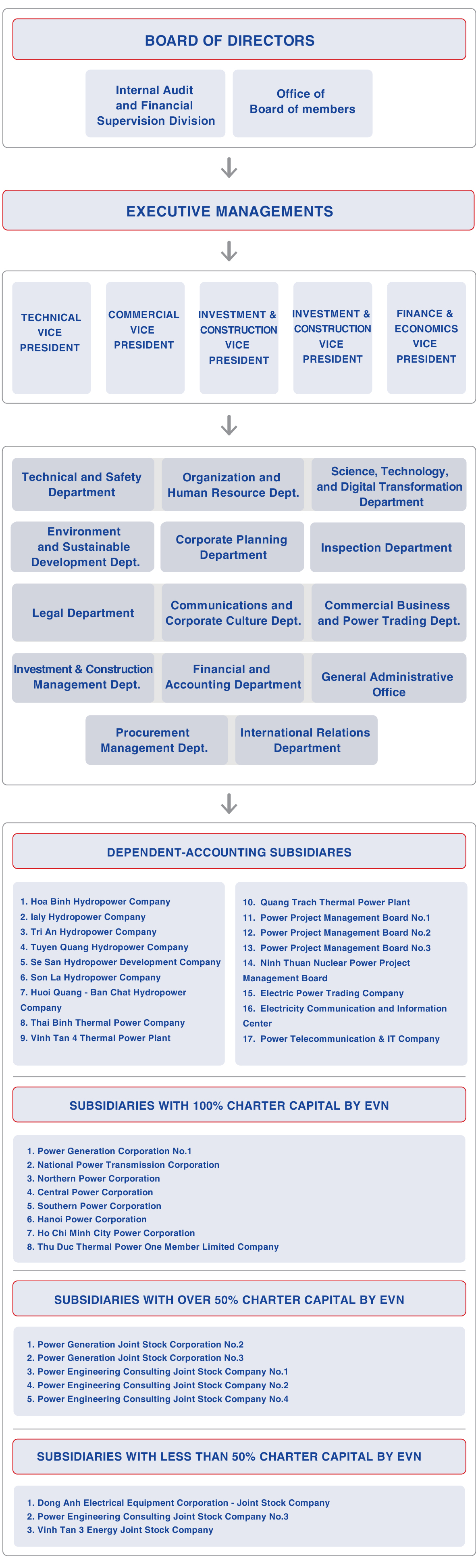 of the Office and professional departments under the EVN Headquarters.