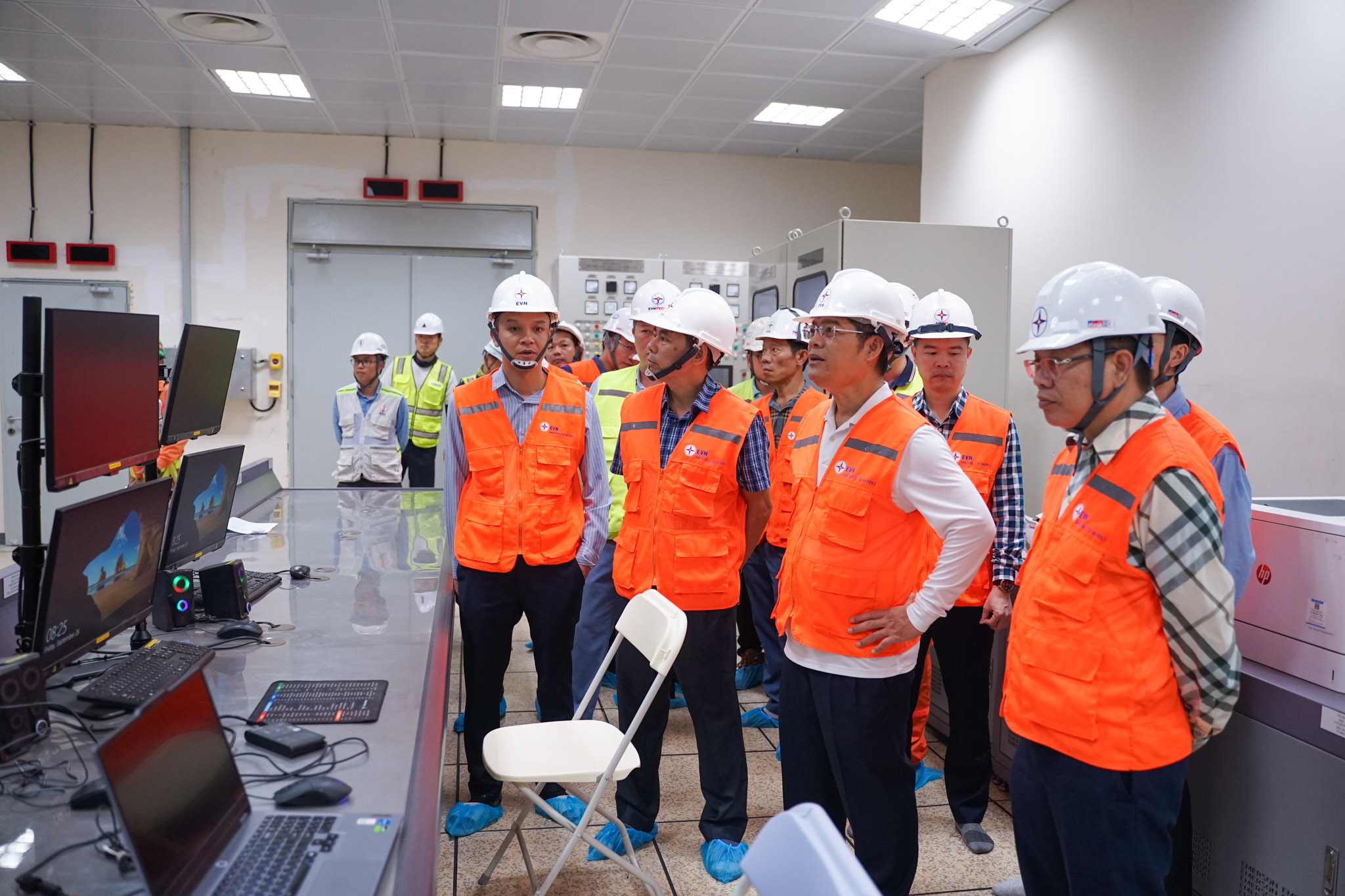 Vice President Nguyen Tai Anh inspects central control room of Quang Trach 1 Thermal Power Plant.