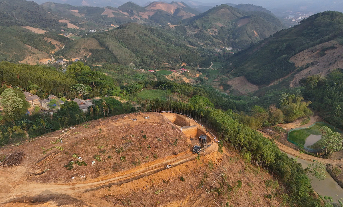 Lao Cai – Vinh Yen 500kV transmission line project passes through 4 provinces: Lao Cai, Yen Bai, Phu Tho, and Vinh Phuc with 468 column foundation locations. Many foundation locations are in dangerous areas, therefore the contractor has to build temporary roads for construction. Photo: N. Linh