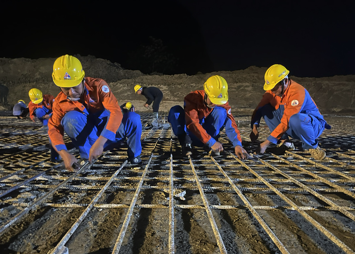 Song Da 11 Contractor is arranging more than 30 workers to install foundation reinforcement at location VT167. In addition, 38 teams are also arranged to deploy to other locations in package 4. Due to the urgent nature, the project construction force has worked overtime until late at night to meet the project's progress.